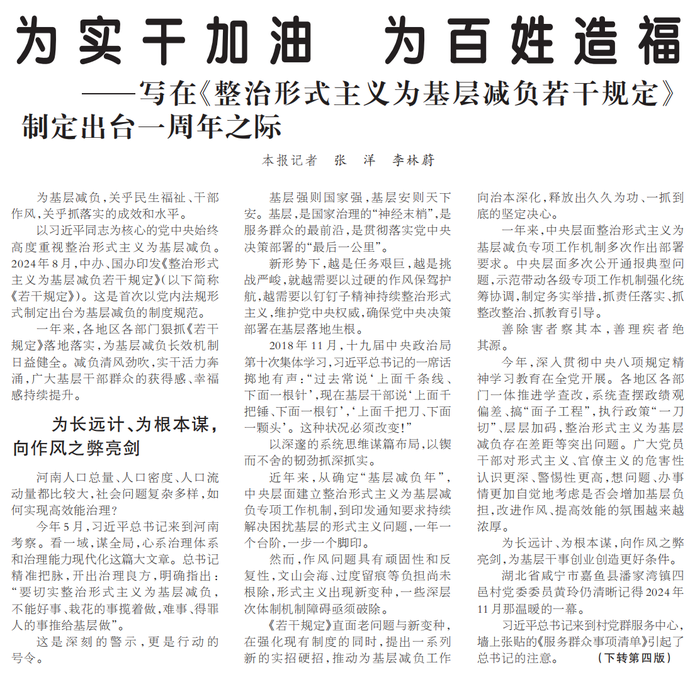 ——写在《整治形式主义为基层减负若干规定》制定出台一周年之际