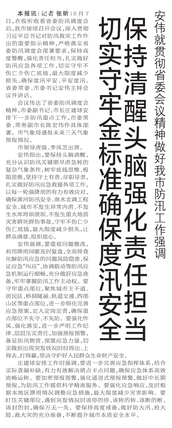 安伟就贯彻省委会议精神做好我市防汛工作强调