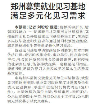 郑州募集就业见习基地 满足多元化见习需求
