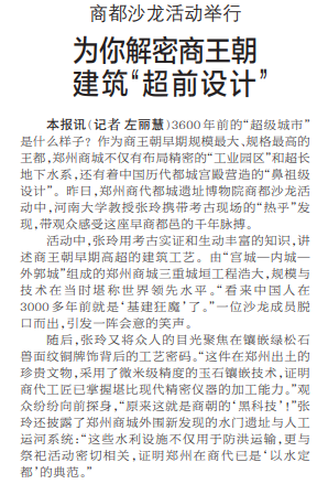 3600年前的“超级城市”是什么样子?作为商王朝早期规模最大、规格最高的王都,郑州商城不仅有布局精密的“工业园区”和超长地下水系,还有着中国历代都城宫殿营造的“鼻祖级设计”。昨日,郑州商代都城遗址博物院商都沙龙活动中,河南大学教授张玲携带考古现场的“热乎”发现,带观众感受这座早商都邑的千年脉搏。(今日《郑州日报》2版)