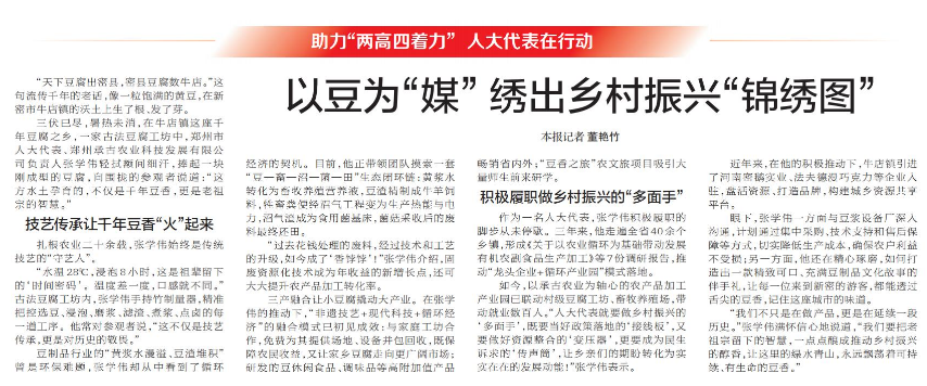 “天下豆腐出密县,密县豆腐数牛店。”这句流传千年的老话,像一粒饱满的黄豆,在新密市牛店镇的沃土上生了根、发了芽。(今日《郑州日报》2版)