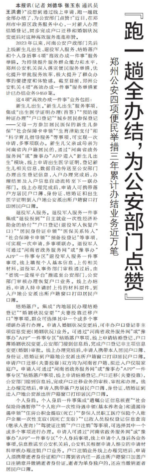 郑州公安四项便民举措三年累计办结业务近万笔