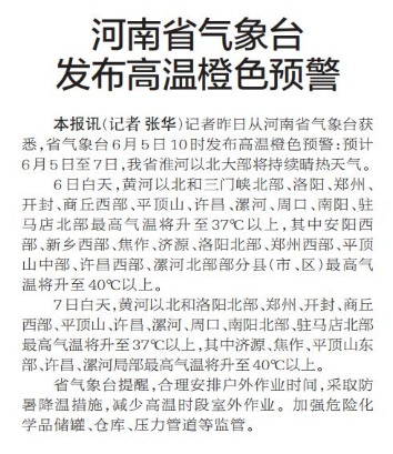 河南省气象台发布高温橙色预警
