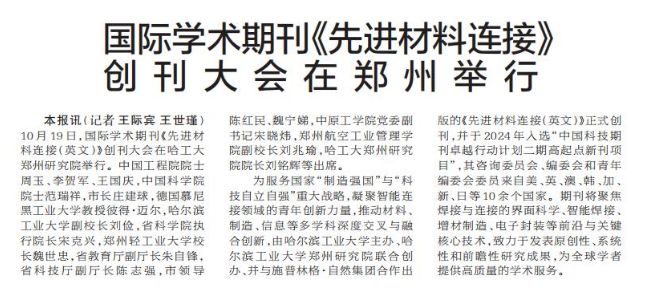 国际学术期刊《先进材料连接》创刊大会在郑州举行