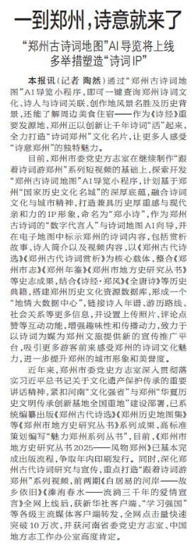 “郑州古诗词地图”AI导览将上线 多举措塑造“诗词IP”