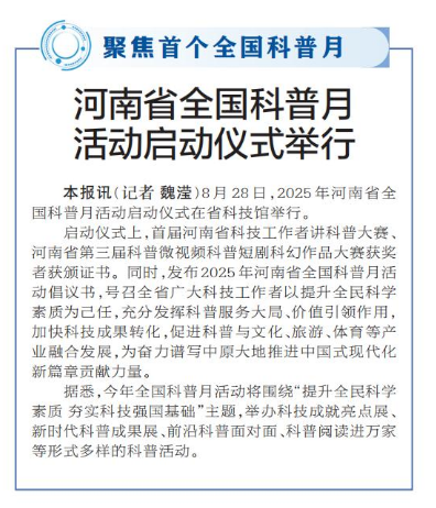 8月28日,2025年河南省全国科普月活动启动仪式在省科技馆举行。(今日《郑州日报》2版)