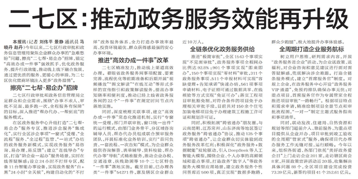 二七区:推动政务服务效能再升级