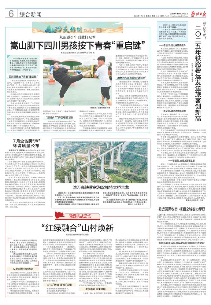 8月31日,郑州铁路、机场暑运落下帷幕。今年暑期铁路探亲流、旅游流、学生流三流叠加,旅客出行需求旺盛,客流保持高位运行。铁路、机场方面落实便民利民服务举措,优化服务与航线拓展,全力满足人民群众出行和社会物流需求,切实提升旅客出行体验,充分彰显了郑州枢纽之城实力。(今日《郑州日报》1版、6版)