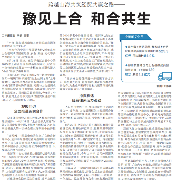 “河南作为中国中部重要省份,近年来与上合组织成员国在经贸、农业、科技、文化等多个领域合作广泛,成果显著……”