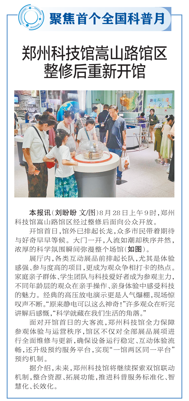 8月28日上午9时,郑州科技馆嵩山路馆区经过整修后面向公众开放。
