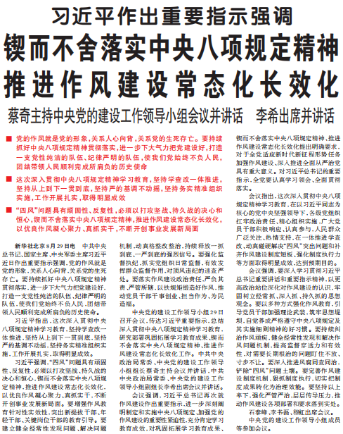 锲而不舍落实中央八项规定精神 推进作风建设常态化长效化