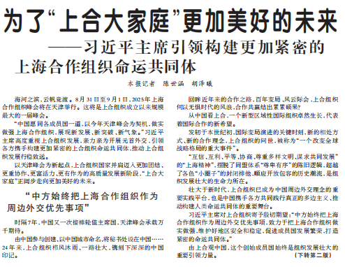 海河之滨,云帆竞渡。8月31日至9月1日,2025年上海合作组织峰会将在天津举行。这将是上合组织成立以来规模最大的一届峰会。(今日《人民日报》1版、2版)