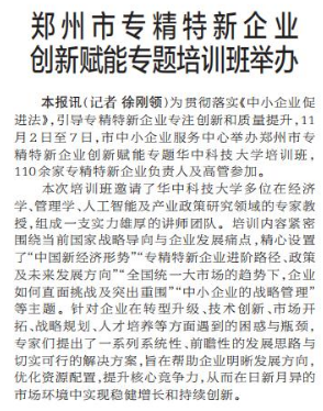 郑州市专精特新企业创新赋能专题培训班举办