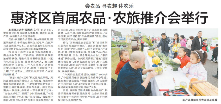 11月8日,中原种业科技园蔬菜瓜果飘香,惠济区首届农品·农旅推介会在这里举行。(今日《郑州日报》5版)
