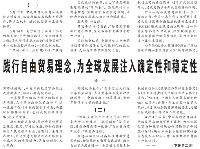 践行自由贸易理念,为全球发展注入确定性和稳定性