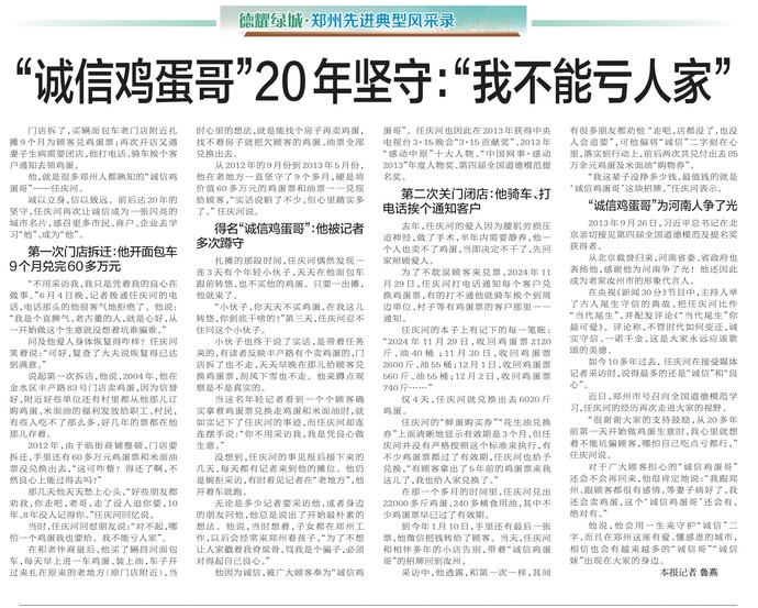 “诚信鸡蛋哥”20年坚守:“我不能亏人家”