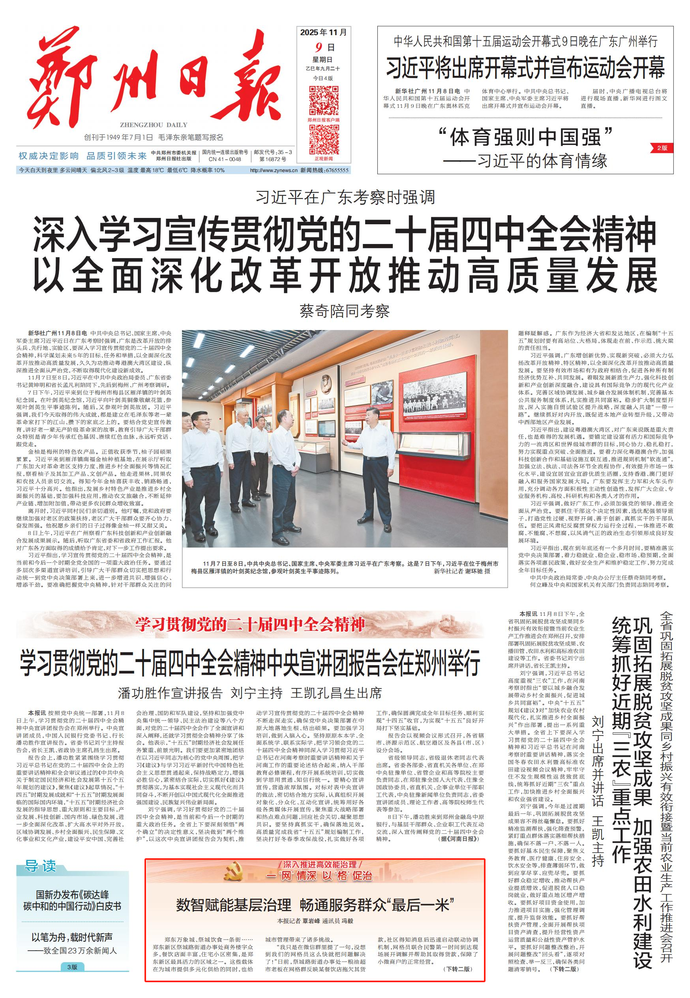 11月8日,学习贯彻党的二十届四中全会精神中央宣讲团走进河南,以报告会、座谈会等形式对全会精神作全面宣讲和深入阐释。(今日《河南日报》2版)