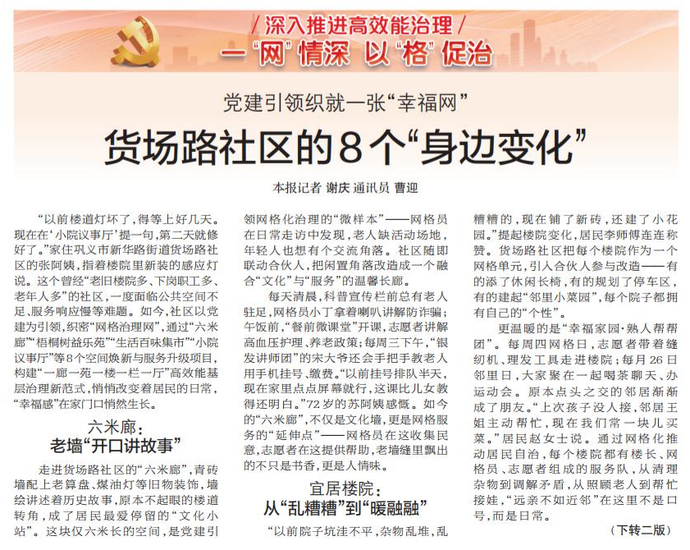 “以前楼道灯坏了,得等上好几天。现在在‘小院议事厅’提一句,第二天就修好了。”家住巩义市新华路街道货场路社区的张阿姨,指着楼院里新装的感应灯说。这个曾经“老旧楼院多、下岗职工多、老年人多”的社区,一度面临公共空间不足、服务响应慢等难题。如今,社区以党建为引领,织密“网格治理网”,通过“六米廊”“梧桐树益乐苑”“生活百味集市”“小院议事厅”等8个空间焕新与服务升级项目,构建“一廊一苑一楼一栏一厅”高效能基层治理新范式,悄悄改变着居民的日常,“幸福感”在家门口悄然生长。(今日《郑州日报》1版、2版)