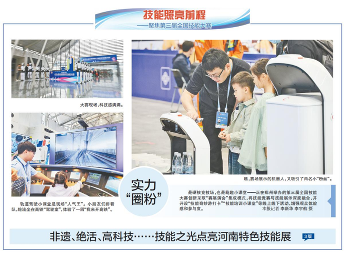 是硬核竞技场,也是萌趣小课堂——正在郑州举办的第三届全国技能大赛创新采取“赛展演会”集成模式,将技能竞赛与技能展示深度融合,并开设“技能奇妙游打卡”“技能培训小课堂”等线上线下活动,增强观众体验感和参与度。(今日《郑州日报》1版、3版)