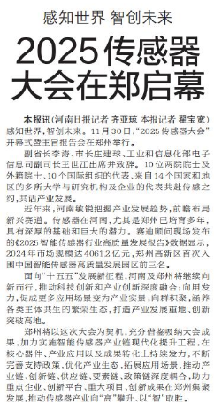 感知世界,智创未来。11月30日,“2025传感器大会”开幕式暨主旨报告会在郑州举行。(今日《郑州日报》1版)
