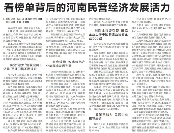 看榜单背后的河南民营经济发展活力