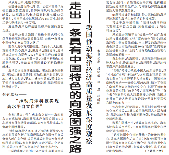 发达的海洋经济是建设海洋强国的重要支撑。(今日《人民日报》1版、7版)