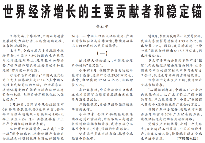 世界经济增长的主要贡献者和稳定锚