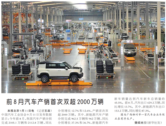 前8月汽车产销首次双超2000万辆