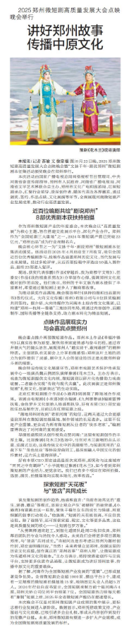 9月23日晚,2025郑州微短剧高质量发展大会点映晚会暨“文脉千年·剧说郑州”微短剧剧本征集活动颁奖晚会在郑州举行。(今日《郑州日报》2版)