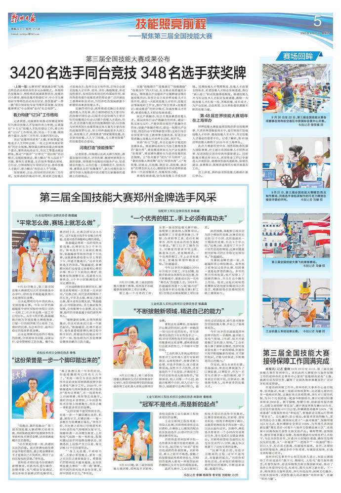 9月24日上午,中华人民共和国第三届职业技能大赛赛后新闻发布会在郑州航空港区新闻中心举行,介绍大赛成果、取得经验等相关情况。(今日《郑州日报》1版、5版)