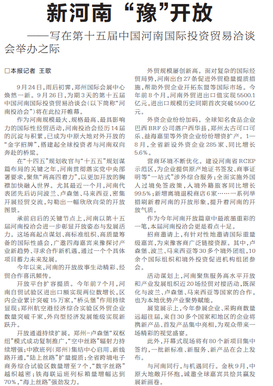 ——写在第十五届中国河南国际投资贸易洽谈会举办之际