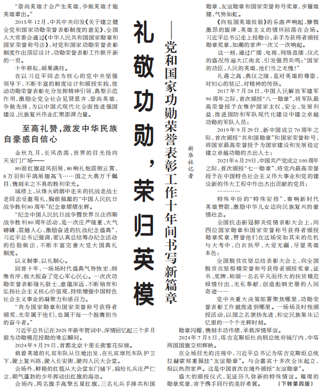 ——党和国家功勋荣誉表彰工作十年间书写新篇章