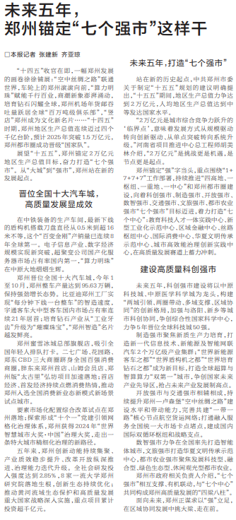 解码郑州“十五五”时期“1+7+7+7”部署安排系列评论之二