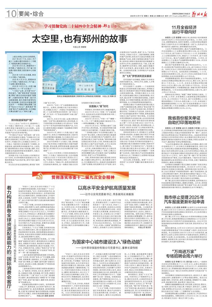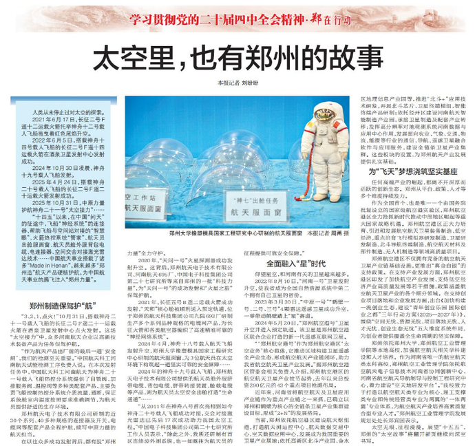 2025年10月31日,中原力量护航神舟二十一号“太空接力”……(今日《郑州日报》10版)