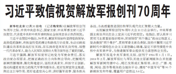 习近平致信祝贺解放军报创刊70周年