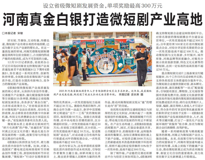 河南真金白银打造微短剧产业高地