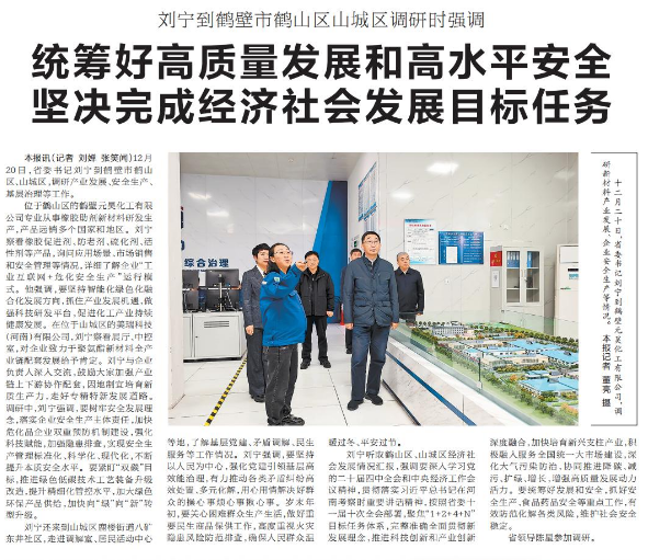 12月20日,省委书记刘宁到鹤壁市鹤山区、山城区,调研产业发展、安全生产、基层治理等工作。(今日《河南日报》1版)