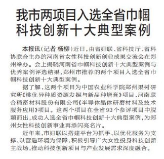 我市两项目入选全省巾帼科技创新十大典型案例