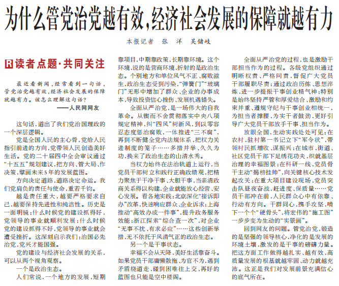为什么管党治党越有效,经济社会发展的保障就越有力