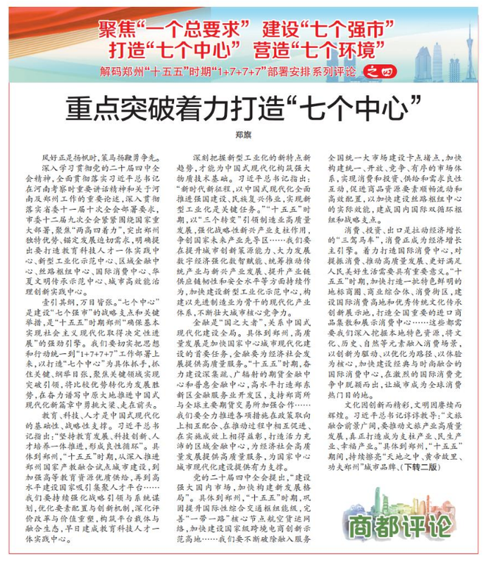 解码郑州“十五五”时期“1+7+7+7”部署安排系列评论之四
