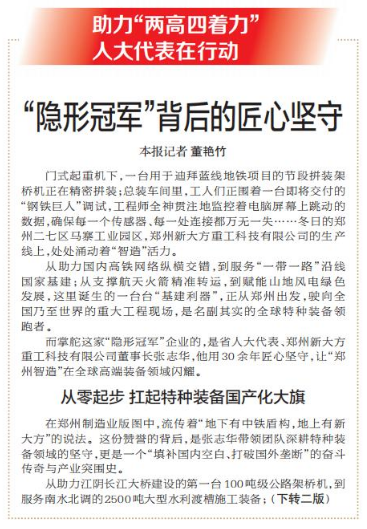 门式起重机下,一台用于迪拜蓝线地铁项目的节段拼装架桥机正在精密拼装;总装车间里,工人们正围着一台即将交付的“钢铁巨人”调试,工程师全神贯注地监控着电脑屏幕上跳动的数据,确保每一个传感器、每一处连接都万无一失……冬日的郑州二七区马寨工业园区,郑州新大方重工科技有限公司的生产线上,处处涌动着“智造”活力。(今日《郑州日报》1版、2版)