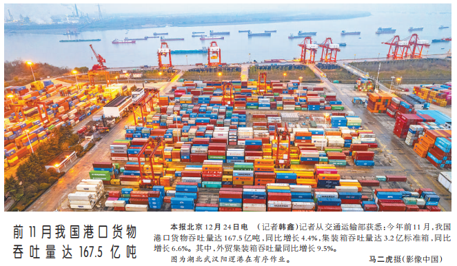 前11月我国港口货物吞吐量达167.5亿吨
