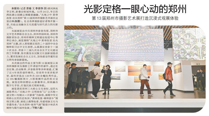 黄河奔流孕文明,影像定格城市魂。12月24日,冬日的西流湖公园晴云阁暖意融融,“天地之中 黄帝故里 功夫郑州”第13届郑州市摄影艺术展在这里启幕。社会各界摄影爱好者等齐聚一堂,共赴这场融合文化底蕴与时代活力的光影之约。(今日《郑州日报》1版、8版)