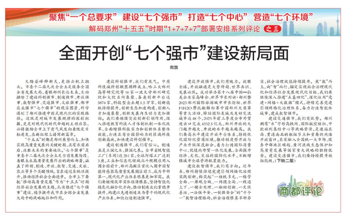 解码郑州“十五五”时期“1+7+7+7”部署安排系列评论之三