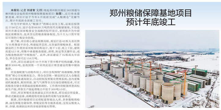 郑州粮储保障基地项目预计年底竣工