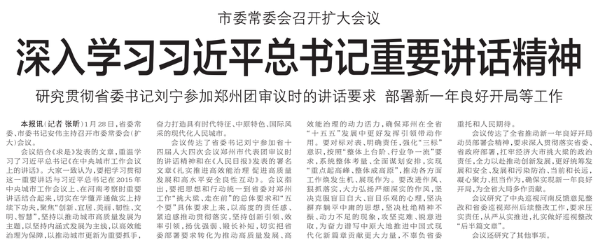 研究贯彻省委书记刘宁参加郑州团审议时的讲话要求 部署新一年良好开局等工作