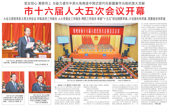 2月7日上午,郑州市第十六届人民代表大会第五次会议在省人民会堂开幕。