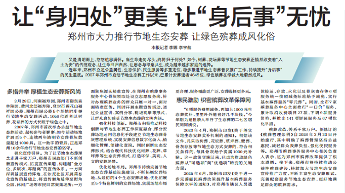 郑州市大力推行节地生态安葬 让绿色殡葬成风化俗