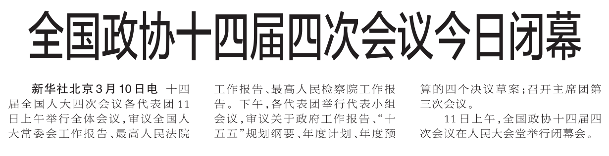 全国政协十四届四次会议今日闭幕