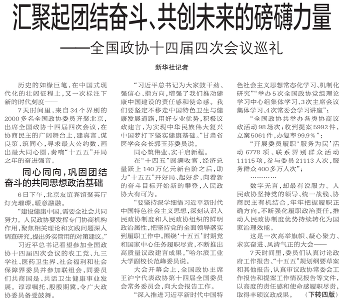 ——全国政协十四届四次会议巡礼